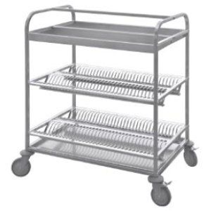 950х500х1100мм, Тележка для сушки посуды три уровня. Каркас разборный из трубы 20х20 нержавеющей стали марки AISI 304 толщиной 1,2мм. Три полки на 70 тарелок и 50 стаканов. Полки и поддон изготовлены из нержавеющей стали марки AISI 304 толщиной 0,8мм. Тележка поставляется в разобранном виде.