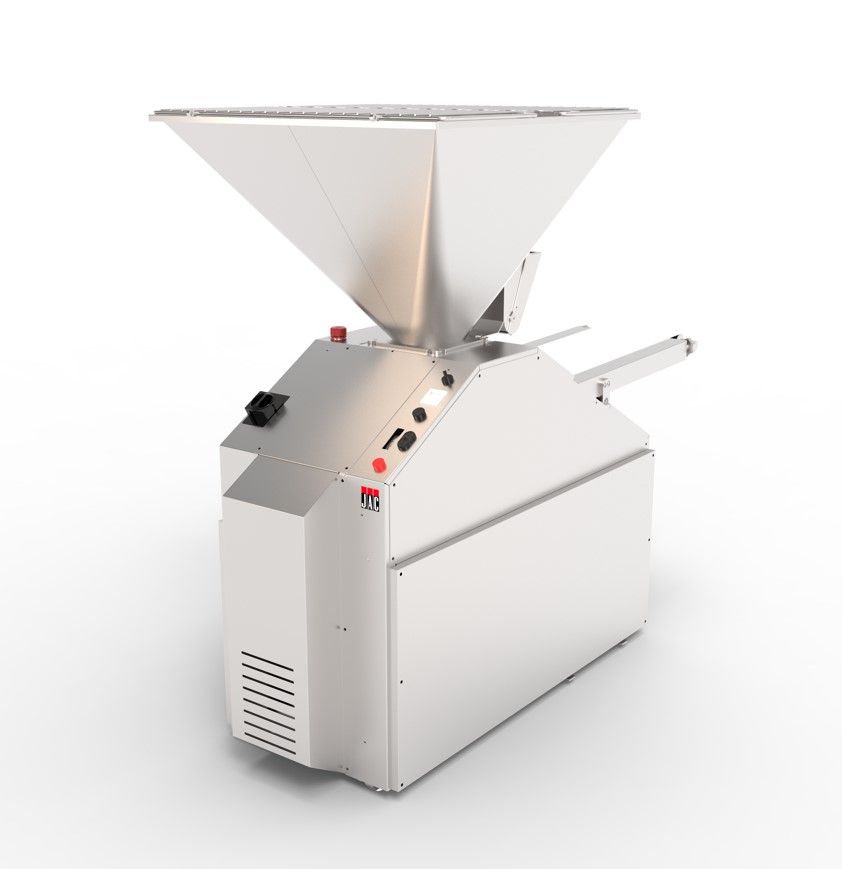 1802х563 (1008 ширина бункера)х1701мм, 2,2кВт, 380В, регулируемая скорость, 960-2000 шт/ч, бункер с тефлоновым покрытием на 200кг, поршень120мм (диапазон деления 90-1000 гр.), корпус из нерж. стали
