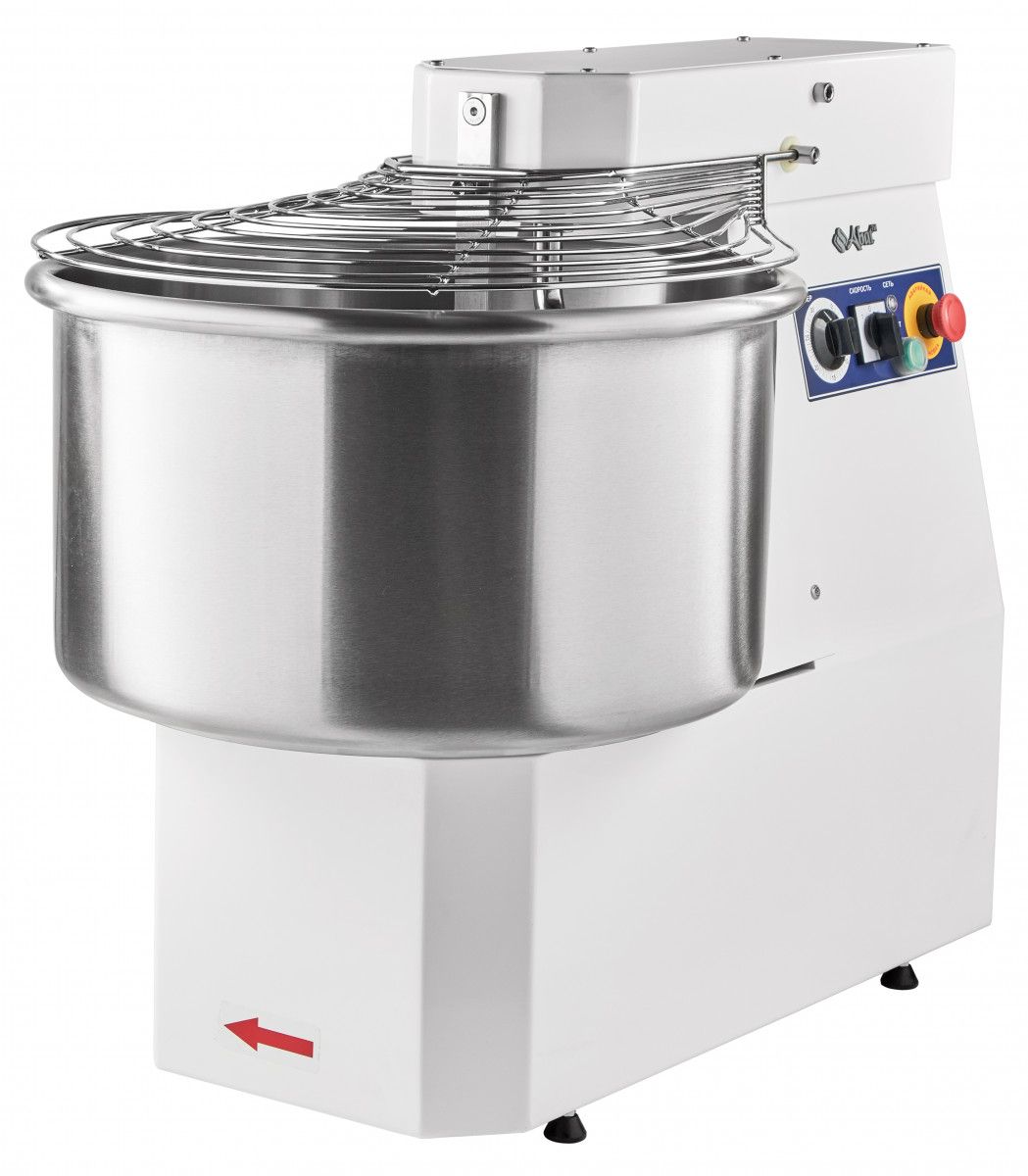 560х890х750мм, Тестомес спиральный ТМС-60НН-2Р, серия LIGHT, 2 скорости, таймер, несъемная дежа 60 л, неподъемная траверса, электромеханическая панель управления, 225 кг/ч, 560х890х750 мм, 1,0/1,7 кВт, 400В, цепной привод