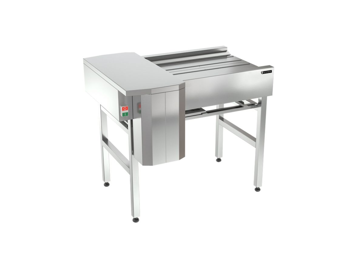 1000х765х880мм, 0,38кВт, 380В, скорость движения ленты 0,2 м/с, максимальная нагрузка на ленту 15 кг/пог.м , ширина используемой ленты 450мм. Ведущий модуль представляет собой приводную часть транспортера, предназначенную для осуществления движения ленты.