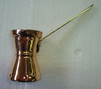 турка медная 160 мл - на две порции, диаметр 6 см, высота 8,3 см, толщина медных стенок 0,8 мм, ручка 11 см