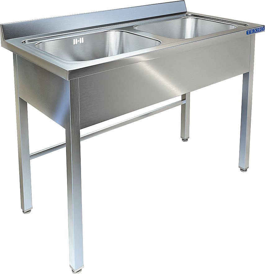 1200х600х850мм, Две цельнотянутые емкости размером 500х400х250 из нержавеющей стали марки AISI 304 толщиной 1мм, обнижение 15 мм. Объемный пристенный борт высотой 70мм. Фартук с 3-х сторон высотой 285 мм. Каркас сварной из трубы 40х40 нержавеющей стали марки AISI 304 толщиной 1,2мм, с тыловой части установлены две перемычки для жесткости. Ванна комплектуется выпуском с нержавеющей решеткой и механическим запорным клапаном, диаметр выпуска 90мм, диаметр подключаемого сифона 50мм, перелив, регулируемые опоры. На дно ванны нанесена виброшумоизоляция. Ванна поставляется в собранном виде.
