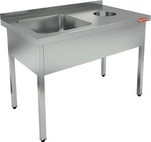 1200х600х870мм, НДСО1М-12/6Л стол-моечная ванна левая без борта, 1 секц. (500х400х250), с правым крылом стола для отходов