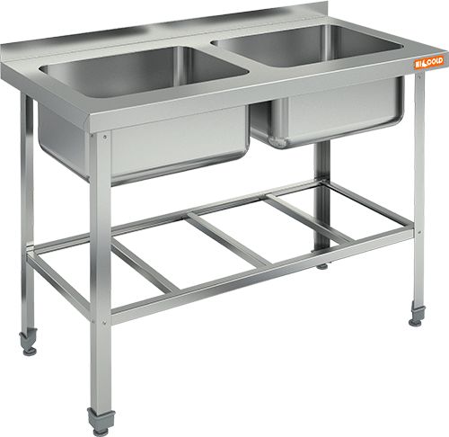 1300х700х870мм, НСО2М-13/7БР ЭН стол-моечная ванна, 2 секц. (500х500х300), (нерж.угол.)