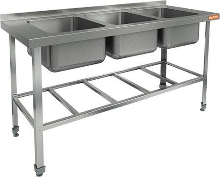 1600х600х850мм, НСО3М-16/6БР ЭЦ стол-моечная ванна,3 секц. (400х400х250) (оцин.угол.)