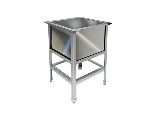 700х700х850, ванна сварная из стали AISI 304 (1 емк.)600х600х450, каркас разборный, уголок из нержавеющей стали AISI 430, толщина 1,5 мм, рабочая поверхность изнержавеющей стали AISI 304, толщина металла 0,8 мм.
