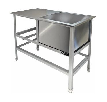 1340х700х850, ванна сварная из стали AISI 304 (1 емк.)600х600х450, обвязка, каркас разборный, уголок из оцинкованного металла, толщиной 1,5 мм, рабочая поверхность из стали AISI 304 , толщиной 0,8 мм, ванна справа.