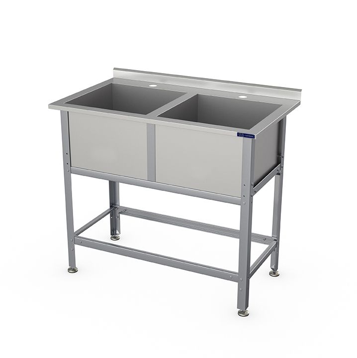 Габариты 1350х750х870мм, внутренние размеры ванны 600х600х450мм, сварная, 2 секции, Ширина пристенного борта 100мм, Высота пристенного борта 50мм, ширина бортов по периметру ванны 50мм, диаметр сливного отверстия 48мм, диаметр отверстия под смеситель 32мм, ванна AISI430 0,8мм, каркас 1,2мм оцинкованная сталь, профиль уголок 40х40мм, регулировка ножек 20мм.Все кромки ванны и элементов каркаса имеют подгиб (фальцовку). В комплект поставки ванны НЕ входит система разрыва струи.