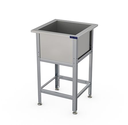 Габариты 700х700х870мм, внутренние размеры ванны 600х600х450мм, сварная, 1 секция, ширина бортов по периметру ванны 50мм, диаметр сливного отверстия 48мм, нет отверстия под смеситель, ванна AISI430 0,8мм, каркас 1,2мм крашеная углеродистая сталь, профиль уголок 40х40мм, регулировка ножек 20мм.Все кромки ванны и элементов каркаса имеют подгиб (фальцовку). В комплект поставки ванны НЕ входит система разрыва струи.