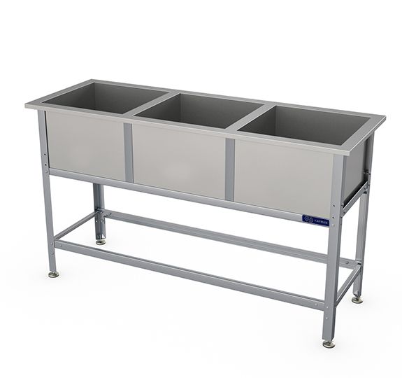 Габариты 1490х530х870мм, внутренние размеры ванны 430х430х300мм, сварная, 3 секции, ширина бортов по периметру ванны 50мм, диаметр сливного отверстия 48мм, нет отверстия под смеситель, ванна AISI430 0,8мм, каркас 1,2мм крашеная углеродистая сталь, профиль уголок 40х40мм, регулировка ножек 20мм.Все кромки ванны и элементов каркаса имеют подгиб (фальцовку). В комплект поставки ванны НЕ входит система разрыва струи.