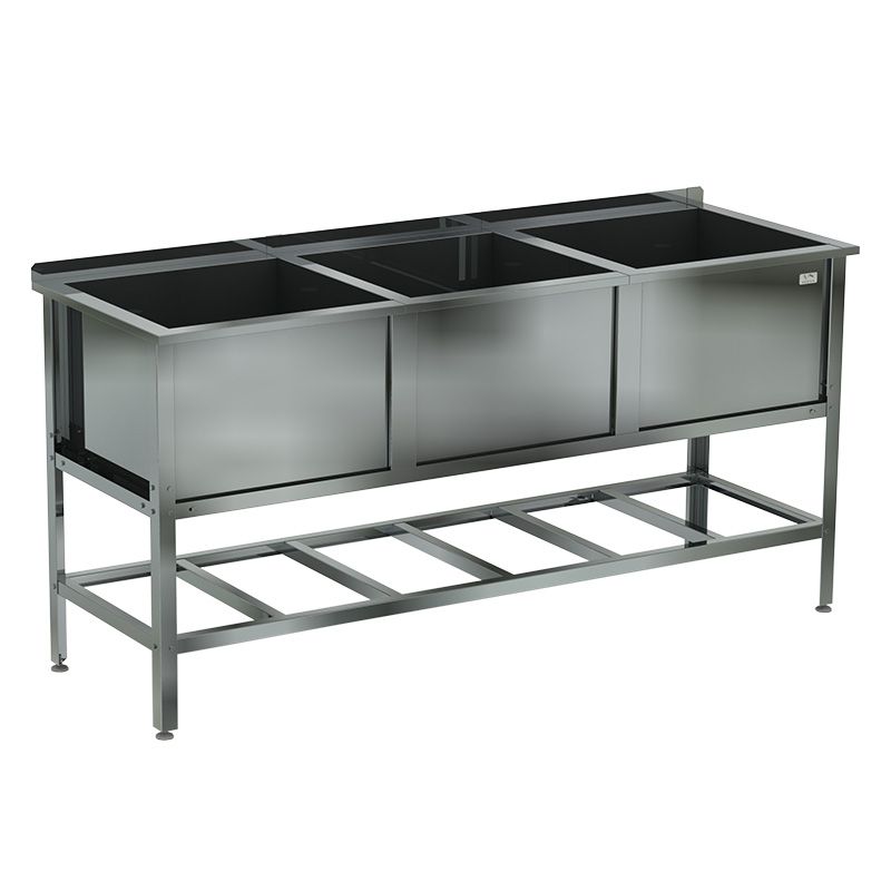 1750х600х870мм, Ванна моечная трехсекционная сварная (ёмкость - нерж. сталь aisi 430, каркас уголок оцинк. сталь, борт), (ёмкость 530х500х400)