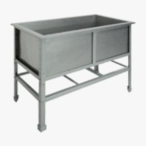 1200х600х850мм, Одна емкость сварная размером 1100х500х400 из нержавеющей стали марки AISI 304 толщиной 0,8мм. Каркас сварной из уголка 40х40 толщиной 2мм, покрытого порошковой краской серого цвета, внизу по периметру обвязка. Ванна комплектуется выпуском с нержавеющей решеткой и механическим запорным клапаном, диаметр выпуска 90мм, диаметр подключаемого сифона 50мм, регулируемые опоры. На дне ванны ребра (лучи) для жесткости и снижения вибрации. Ванна поставляется в собранном виде.