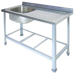 1200х700х850мм, Одна цельнотянутая емкость размером 500х500х300 из нержавеющей стали марки AISI 304 толщиной 1мм, ванна справа, обнижение 15мм, крыло рифленое с сушкой и наклоном для стекания воды с посуды в ванну. Объемный пристенный борт высотой 70мм. Каркас сварной из уголка 40х40 толщиной 2мм, покрытого порошковой краской серого цвета, внизу по периметру обвязка. Ванна комплектуется выпуском с нержавеющей решеткой и механическим запорным клапаном, диаметр выпуска 90мм, диаметр подключаемого сифона 50мм, перелив, регулируемые опоры. На дно ванны нанесена виброшумоизоляция. Ванна поставляется в собранном виде.