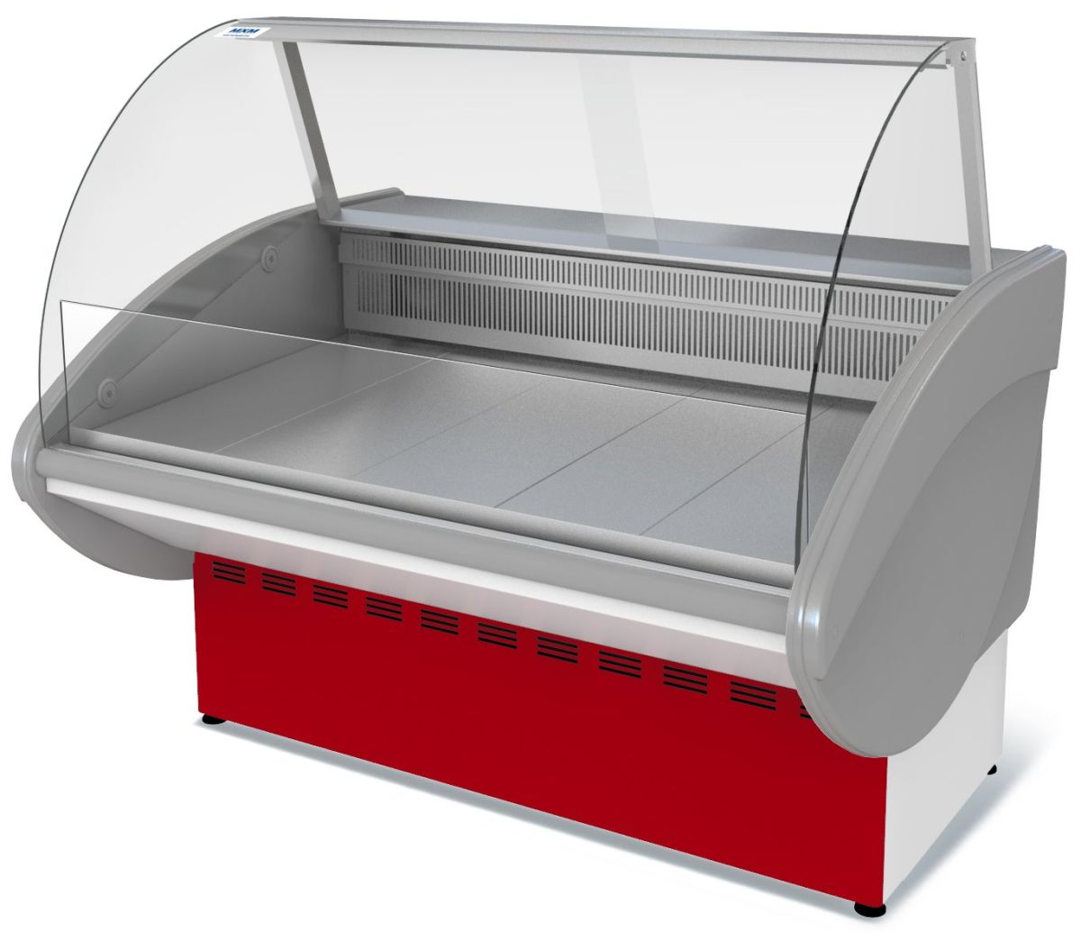 1500х1100х1230, t режим -6+6 С. Витрина холодильная, ( -6....+6С),со встроенным агрегатом, гнутое стекло, полезный объем — 0,34м3,охлаждаемая площадь поддонов для выкладки продуктов, 1,1м2, статическое охлаждение, раздвижные задние шторки, оттайка тэнами, потр. эл.энергии в сутки —12,3кВтч/сутки, 170кг, , цвет корпуса — серый, экспозиционные поверхности — отделка под серебро, 30Вт, 220В, щиток в комплект не входит, светодиодная подсветка